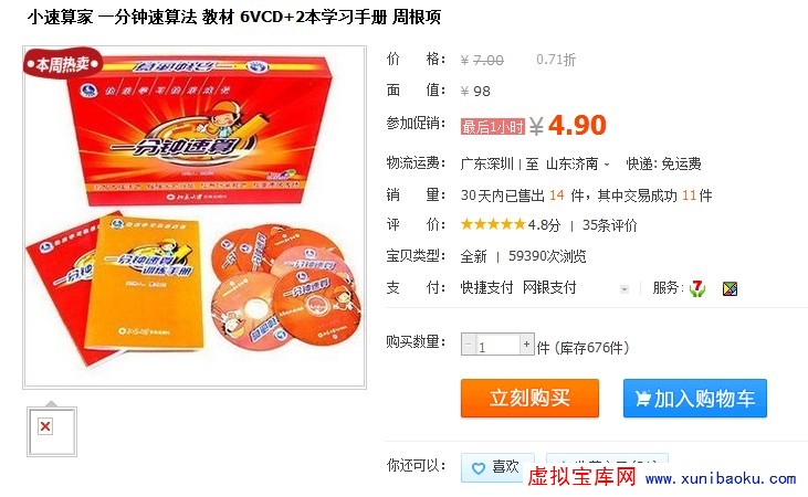 小速算家 一分钟速算法 教材 6VCD+2本学习手册 周根项 |