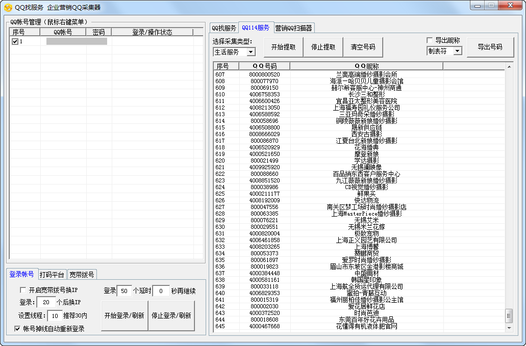 软件功能:采集营销QQ,服务QQ!就是QQ查找中的找服务功能! 注意:此款软件只适合个别用户使用,不懂的不要下载了!