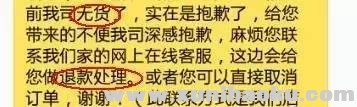 首先在拍下订单后,连着四五天,都没有发货,接着在再三追问下,客服终于搭理了:“商品库存不足,目前我公司无货了,建议申请退款”。