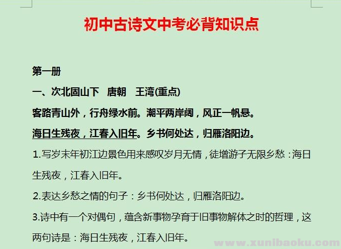 初中古诗文中考必背知识点Word文档百度云网盘下载 |