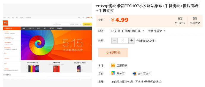 ecshop模板 最新ECSHOP小米网站源码+手机模板+微信商城+手机支付 |